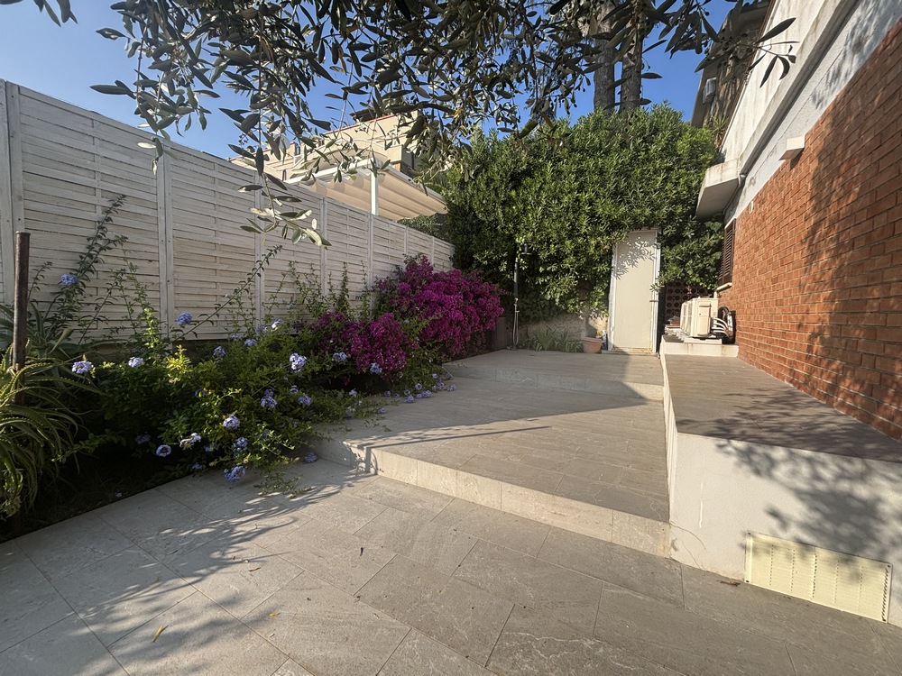 Questo ampio appartamento è la scelta ideale per chi cerca un soggiorno confortevole a soli 5 minuti a piedi dal mare. Con ingresso indipendente dal giardino privato, gli ospiti possono godere di un ambiente tranquillo e riservato.