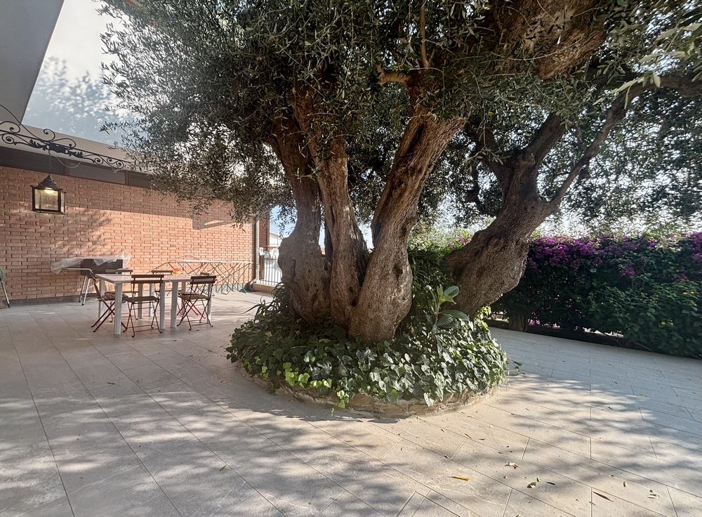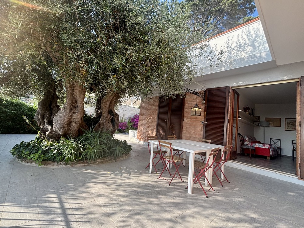 Il giardino privato, arricchito da un tipico olivo centrale, è perfetto per pranzi e cene all’aperto, grazie al tavolo e alle sedie disponibili.